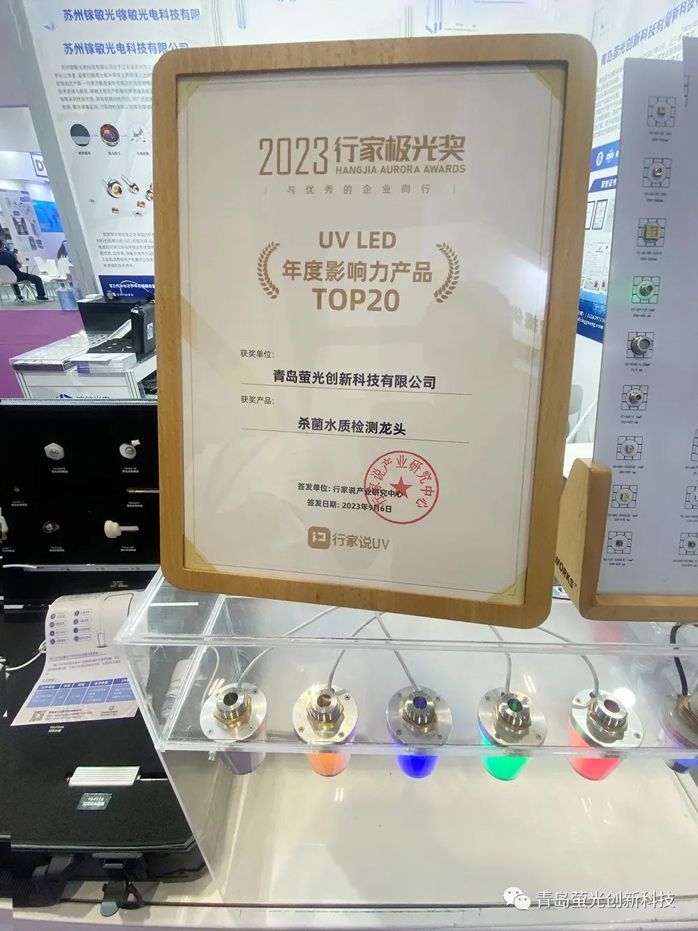 9月6日,2023年行家说——UV LED技术与产业应用高峰论坛暨极光奖榜单揭晓活动在深圳宝安国际会展中心举办。经 2023UV LED 行家极光奖组委会组织专家评审,青岛萤光荣获【2023UV LED 年度影响力产品 TOP20】奖项。
